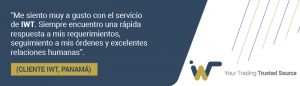 Colombia, Ecuador, República Dominicana, Suriname, son algunos de los países que han confiado sus compras a IWT, eligiendo un servicio basado en buenos tiempos de entrega oportunos y precios competitivos que garantizan la calidad.